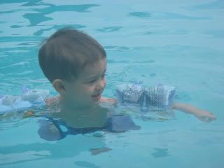 Swimming with his new swimmies