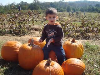 I decided Saturday that we would go to a real pumpkin patch this year. There is a pumpkin farm about an hour away and it was wonderful. Lan was not in the best of moods, but I did manage to get a few pics. Daddy had to work on a project at work that was due today so he didn't get to go with us but G-G did go with us! They had hay rides and plenty of space for my little man to run around. Landon is trying to say pumpkin at the moment but is getting as far as calling them "pumps". We played in the yard today for a while once it got warmer. Lan thinks he is a goat and before I got to him decided to eat a berry from a lariope plant. Thank goodness I saved Poison Control on my cell because this is the third time in 19 months I had to call them. I am so happy that the people working there are concerned but still find a way to have a sense of humor! For the record they are poisonous, but only eating one should cause an upset belly.